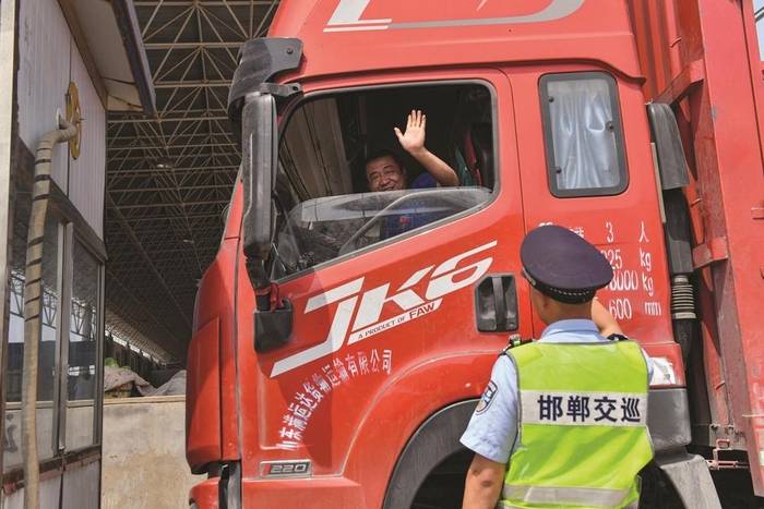 看到北京司机师傅满头大汗,执勤交巡警安慰说:“京冀津一家亲,你到邯郸就是客,我们在市场入口处设立了免费服务点,可以喝杯绿豆汤解解暑。那里备有防暑降温的药品,有需要可自取。”