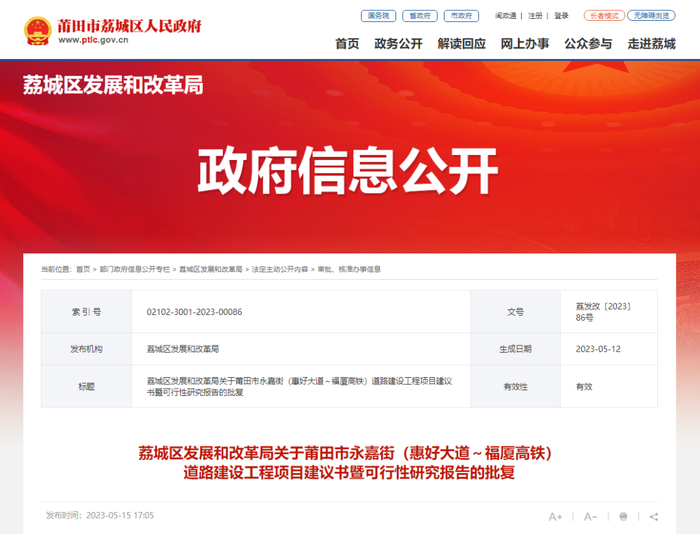 莆田市荔城区人民政府官网、