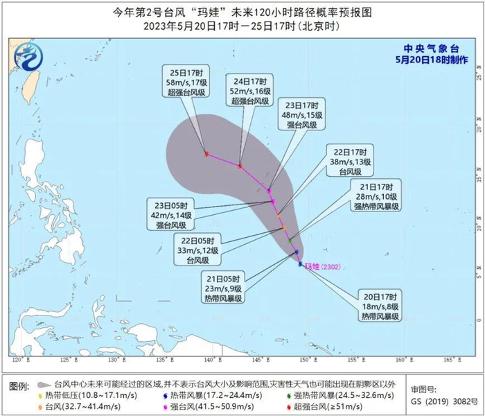 昨天17时,今年第2号台风“玛娃”