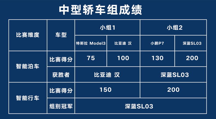 在“智能驾驶量产赛”中,深蓝SL03面对特斯拉Model3、比亚迪汉、小鹏P7等强大对手,在NID3.0领航智驾和APA7.0远程代客泊车的“助攻”下,交出全场唯一满分答卷,荣耀摘金。面对智能行车赛事项目考验时,深蓝 SL03 能够做到精准预判,充分展现了在传感侦测、数据计算、自动驾驶等方面的强大实力。在智能泊车相关比赛科目中,深蓝 SL03 也凭借精准的车位识别能力及"无冗余动作”的泊车技术,成功完成“入库”挑战。