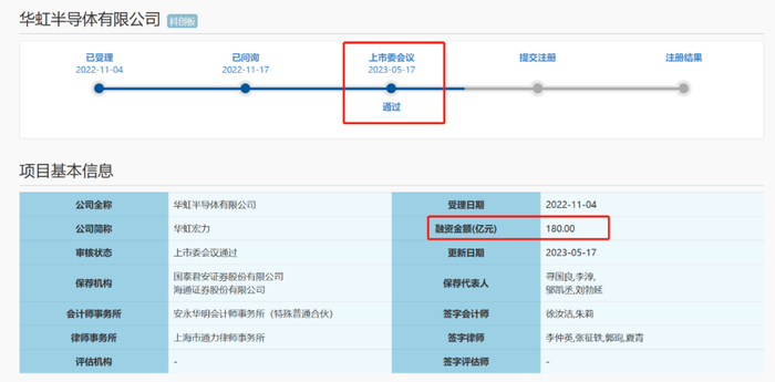 5月17日,国内晶圆代工巨头华虹宏力科创板IPO过会。华虹宏力本次IPO拟募资180亿元,是今年以来A股最大IPO,同时也将成为科创板史上第三大IPO。