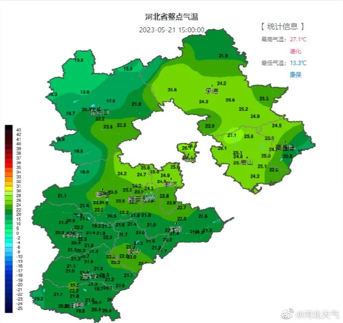 张家口 | 晴转多云 | 24 | 10 | 西北风3-5级 |