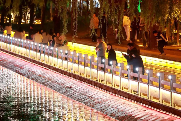 一条河,“火”了一座城。经过持续打造提升的饮马河,夜晚河灯闪烁,光影琉璃,一动一静皆相宜。烤串、蒸饺、鱼丸、烤肠等“一步一美食”的盛况让人眼花缭乱,好吃、好看、好逛、好玩,不少游客沉浸其中,乐而忘返。或情侣相伴,或三五好友,或拖家带口……据粗略统计,近期试运行期间,每晚来饮马河步行街打卡的游客都在三万人左右。如今,夜逛饮马河步行街业已成为当地居民乃至邢台市区游客的一种新时尚。