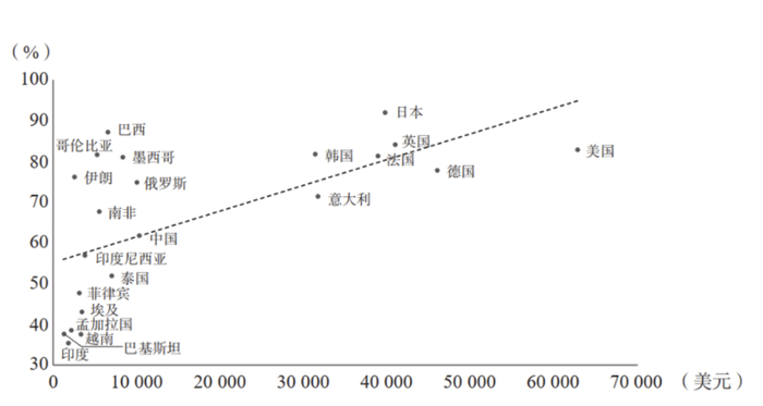 部分国家城市化率和人均GDP的关系