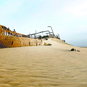 由于寒流影响,这里常年大雾弥漫,在风急浪大、能见度极低的情况下,船只遇到岩石暗礁,便是毁灭性的灾难。骷髅海岸沿岸分布着十几个沉船遗骸,年代久远的掩埋在沙漠中,只剩下锈迹斑斑。19世纪40年代,英国著名轮船“达尼丁之星”号在骷髅海岸边触礁后搁浅,成为此处最著名的沉船遗骸。事后,拖船前去救援,结果也沉没搁浅了。这些沉船经过海浪与风沙的锤炼,历尽沧海桑田,反而成了沙漠中独特的风景。