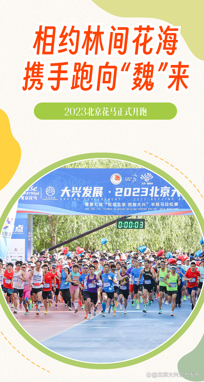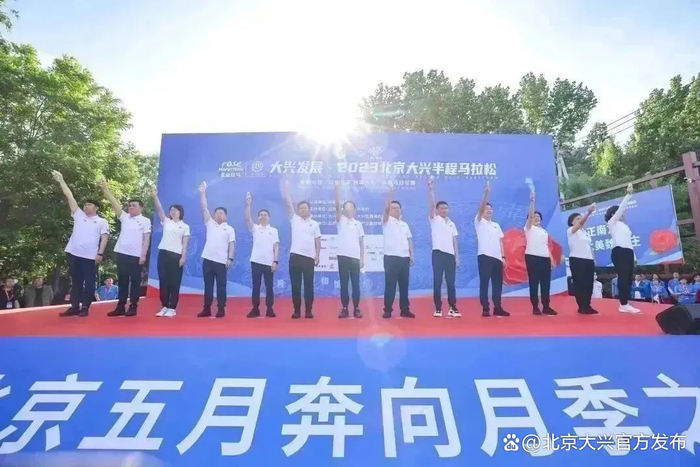 5月21日上午,大兴发展·2023北京大兴半程马拉松暨第七届“花绘北京·悦跑大兴”半程马拉松赛(简称:北京花马)在魏善庄镇燃情开跑,同步开“跑”的还有2023“线上花马”。中国田径协会副秘书长、国际田联技术委员会委员、北京花马赛事监督水涛,2012年伦敦奥运会男子20公里竞走冠军、中国田径协会执委会执委陈定,大兴区委书记王有国,大兴区人大常委会党组书记、主任金卫东等区领导及区文化和旅游局、区体育局、北京大兴发展国有资本投资运营有限公司、大兴区区委政法委、大兴区农业农村局、大兴区融媒体中心等相关单位领导参加。