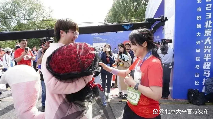 趁着阳光正好,花香景美,有跑友向伴侣现场求婚!顿时,欢呼声与祝福声四起。