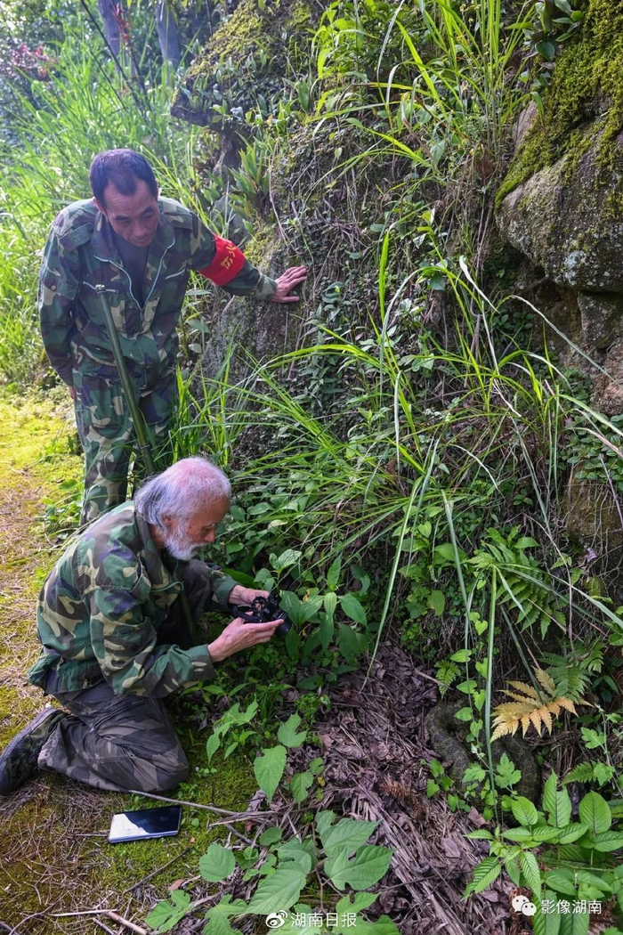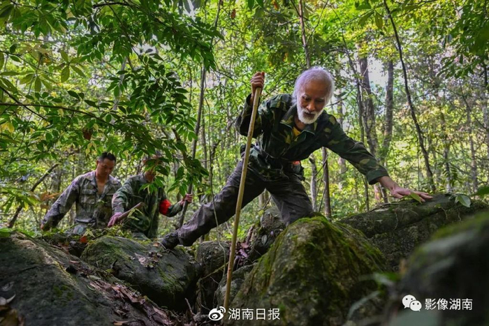 一根竹竿,一身迷彩服,一个挎包,手脚麻利地穿行在山林间。5月18日上午,74岁的“蛇博士”陈远辉像往常一样,和保护站的巡护人员一起进山开展日常巡护调查工作。第23个“国际生物多样性日”前夕,记者走进位于宜章县的莽山国家级自然保护区,跟随3位“博士”开展野生动植物巡护监测与调查,用镜头记录莽山生态守护者呵护下的生机勃勃和丰富多彩的自然世界。