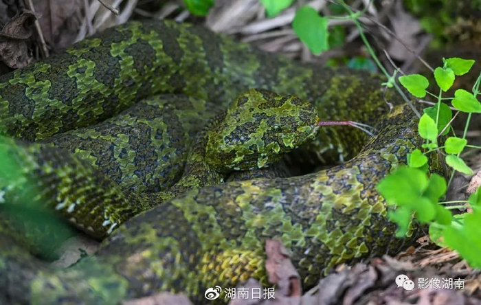 5月18日,“蛇博士”陈远辉在巡护过程中发现莽山烙铁头蛇,赶紧用相机记录下相关信息。