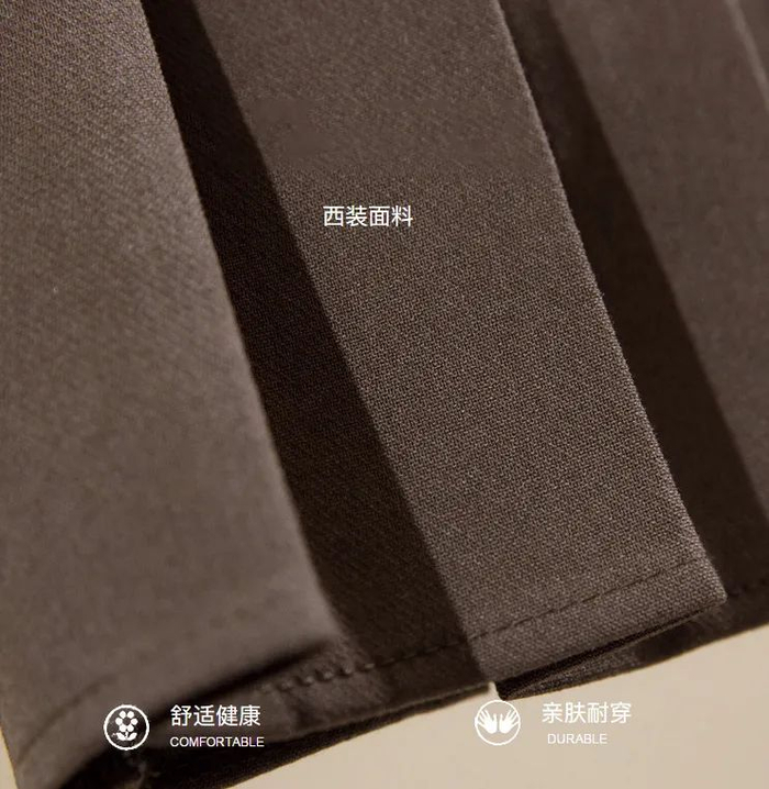 采用了优质西装面料,细腻丝滑有光泽,垂顺有型,亲肤耐穿。