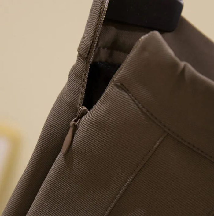 侧腰的拉链,流畅不卡顿,一拉到头。