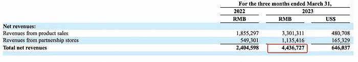 据2023年5月1日瑞幸公布的2023年第一季度财报显示,瑞幸咖啡第一季度实现总净收入44.367亿元,同比增长84.5%,净利润5.648亿元,美国会计准则(GAAP)下营业利润为6.784亿元,营业利润率为15.3%。去年同期瑞幸净利润为1980万元,增长幅度明显。