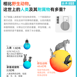 这组数据展示了人类的渺小和庞大。数据显示,野生动物的生物量是全体人类的 37 倍。