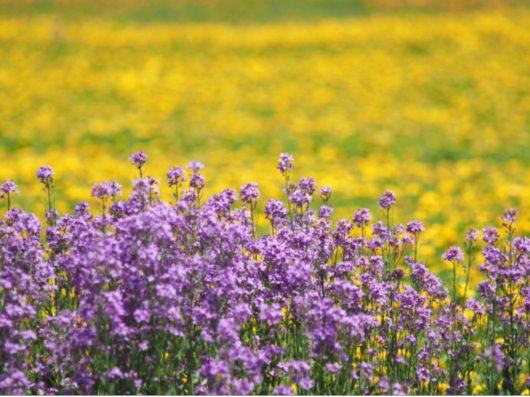 月狮村中心的区域则是四季花海,四季风景各不相同,沿线风光独具魅力。初春时节,经过养护的花海会发出新的绿芽,充满生机与活力;春夏之交,旺盛的柳叶马鞭草呈现出一大片热烈的紫色。