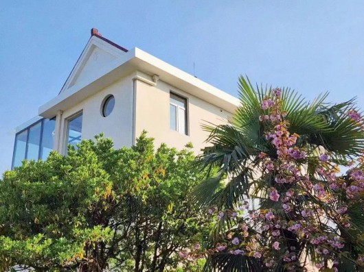 穿过花海,一栋民宿坐落在一角。微风吹过,民宿院内的竹林轻轻摇曳,发出窸窸窣窣的声音,和旁边的凉亭一动一静,放慢了时间,“竹隐清境”的名字便取自此景。穿过竹林,民宿后面还有一片开阔的草地,上面有两三顶帐篷、两个具有北欧风情的小木屋,满足市民的田园度假需求。