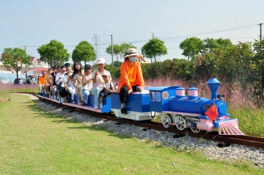 进入金秋,鼠尾草的紫色和粉黛乱子的粉色交融,呈现出属于秋季的浪漫。入了冬,就能观赏沿线的细叶芒,在阳光下闪闪发光,也是别有一番风韵。花海小火车、攻防箭、自行车泵道等娱乐项目穿插其中,为美景又增添了一份沉浸之感。