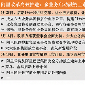 阿里智能云从阿里完全分拆独立走向上市,菜鸟、盒马启动上市计划,阿里国际数字商业集团启动外部融资,六大业务集团正式成立董事会。