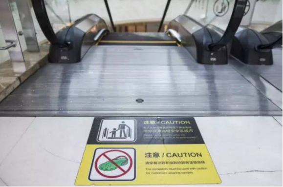一些商场电梯旁也会有警示,不允许穿洞洞鞋上电梯。