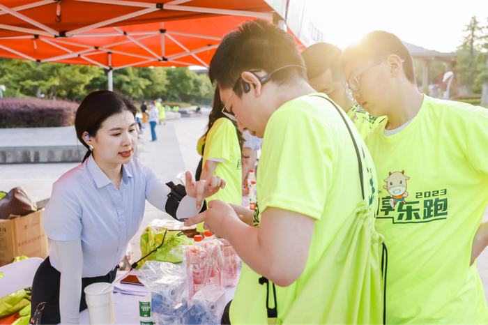 夜跑正式开始前,活动报名人员早早来到现场,领取参赛装备,换好服装,准备在跑道上大展身手,开启一场热血飞扬的夜跑之旅。穿着绿马甲的志愿者们为参加活动的人员登记报名,并发放夜跑定制运动手环、荧光棒和参赛包。伴随着如星灯光,主办方向参跑者们讲解跑步注意事项,并带领参跑者们进行了跑前热身活动,网红健身达人现场教授户外运动技巧,为大家顺利进行夜跑做好充分准备。