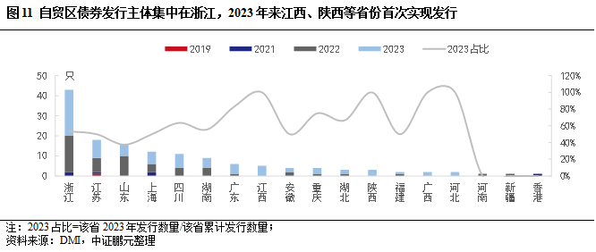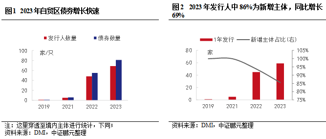 受欧美加息以及境内融资限制影响,2023年自贸区债券发行呈现增长态势。