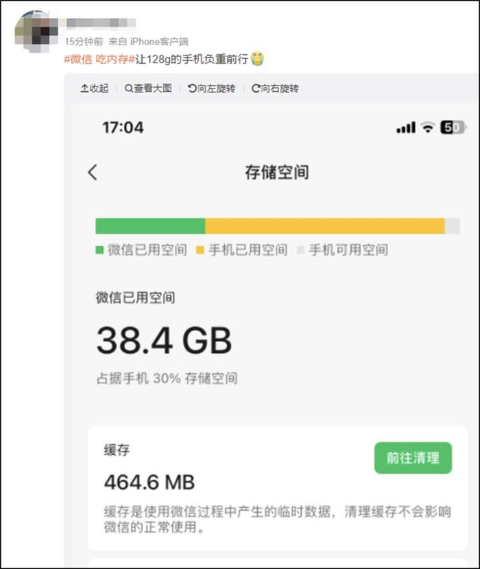 (原标题:“微信吃内存”冲上热搜!128G的手机每天负重前行……这些清理方法赶快收藏→)