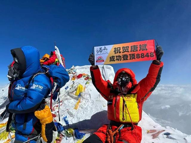 5月17日早上8时53分,唐斌成功登顶,站上了世界之巅。