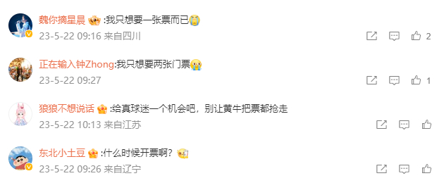 在这条阿根廷共和国驻华大使官方微博的评论区,球迷们只有一个意愿,就是“什么时候开票”。