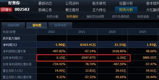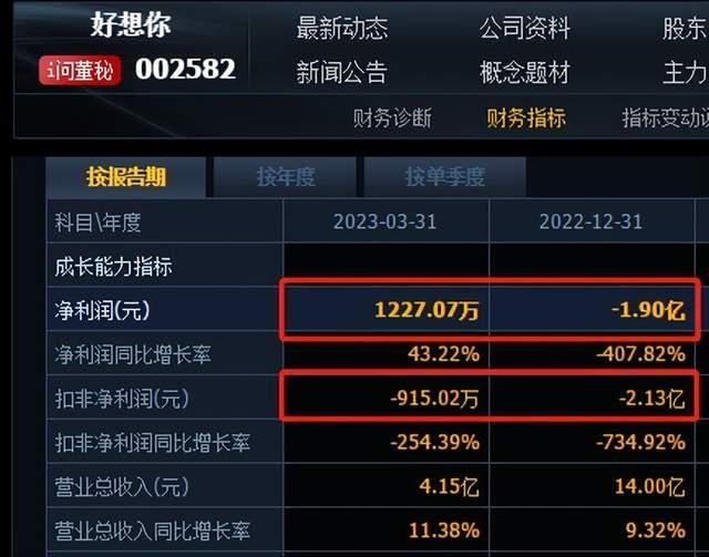 2022年,好想你净利润亏损1.9亿,扣非净利润亏损2.13亿元,均是上市来的最差数据。2023年一季度,好想你净利润1227万元,但扣非净利润亏损915万元。
