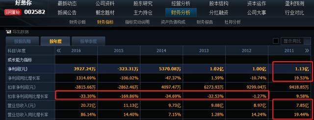 2012年至2016年,好想你扣非净利润连续下滑5年,其中2015和2016年,公司扣非净利润连续亏损。