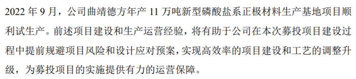 德方纳米也一直在快速扩产。据查询,2022年9月,公司2021年定增募资23亿元投资建设的年产11万吨新型磷酸盐系正极材料生产基地项目才投产,目前尚未达产。