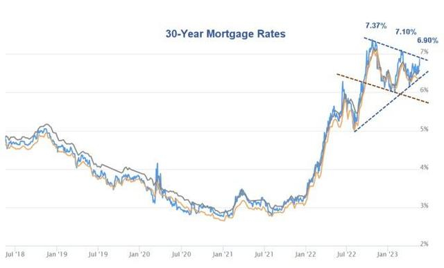 Mortgage News Daily的首席运营官Matthew Graham发文称,截至上周四的五天内,按揭贷款利率连续五天攀升。美国的普通贷款者面临3月初以来最高贷款利率,也就是自硅谷银行倒闭前以来最高水平。该行倒闭刺激资金避险,助推债券和利率大幅攀升。