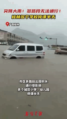 过去24小时,桂林市普降中到大雨,桂林城区、临桂、灵川、资源、兴安等县(区)局部降大暴雨,日降雨量较大的有临桂区临桂镇庙岭村193.0毫米,秀峰区172.0毫米。根据当地媒体发布视频,桂林街道多路段已无法通行。
