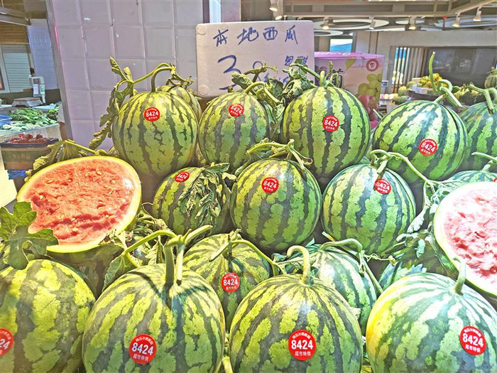 西瓜是当之无愧的“夏日顶流”,品种日益丰富的同时,价格也便宜了不少。朝阳水果市场相关负责人表示,目前广东、江苏北部的西瓜都已大量上市,8424、特小凤、麒麟瓜“三分天下”。