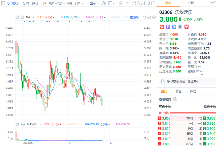 或受此消息影响,乐华娱乐的股价5月22日开盘后很快出现震荡走低,最终收跌3.72%,再度跌破上市发售价。