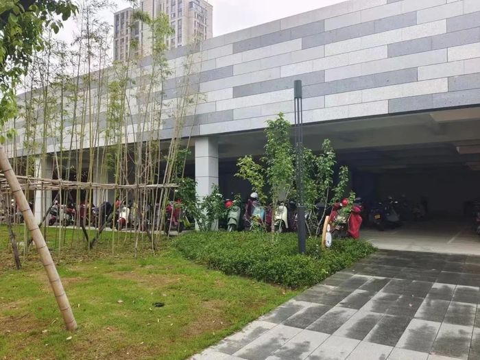 ■绿篱笆围合的风景,约可容纳非机动车200辆