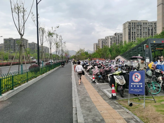 二是余杭区城管局联合镇街在站口东南侧有机融合“口袋公园”景观,新增占地面积约400平方米停放场地,约可容纳非机动车200辆。该停放点无缝衔接周边地铁站口、停车场、公共自行车点、公交站点,满足百姓“零距离”换乘意愿。