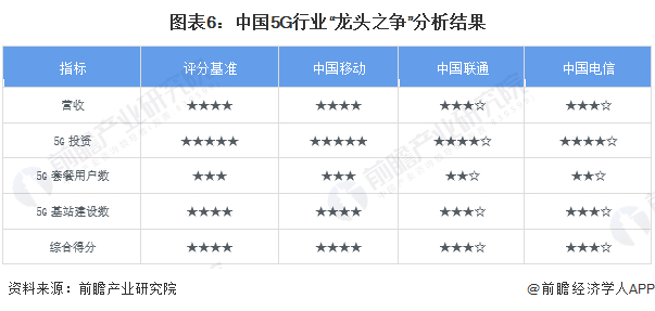 基于前文分析结果,前瞻认为,中国移动因在5G投资额、5G套餐用户数、5G基站建设数均处于领先地位,目前是我国5G行业企业中的“龙头”。