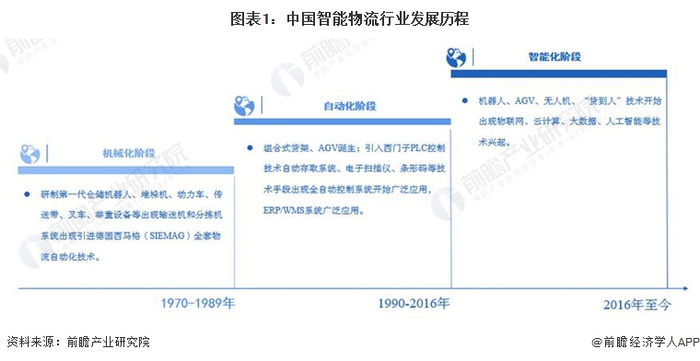 中国智能物流行业发展共经历了三个阶段,分别是机械化阶段、自动化阶段和智能化阶段。