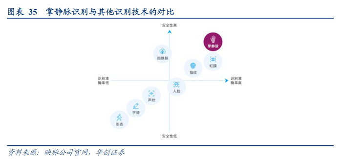 相对于其他生物识别技术来说,静脉识别技术其具有六大特性:误识率低、支持活体识别、快速易用、特征稳定、安全防盗和可实现非接触式识别。