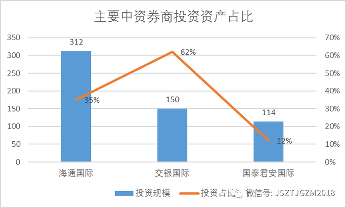 但是想到固收和自营规模很大的可能以海通国际和交银国际代表性最强,海通国际近900亿的资产,大约300亿进行了股票和私募投资,交银国际240亿的资产150亿投资了股票和债券。