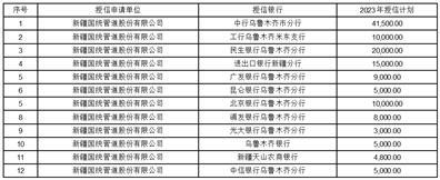 公司根据2023年财务预算及生产经营计划,拟向相关金融机构申请2023年度公司融资授信额度事项,具体授信额度计划如下: