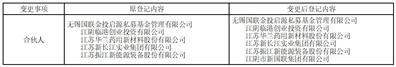 近日,公司获悉启泰基金已完成相关工商变更登记手续,并取得由江阴市行政审批局颁发的《营业执照》和《登记通知书》,具体变更登记事项如下:
