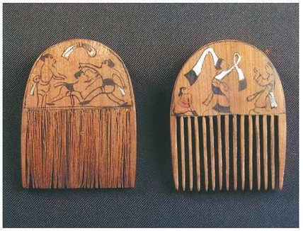 虽然礼仪中倡导人们经常清洁头发,但在各类资源都不十分充裕的古代,能真正做到“三日一沐”的人家少之又少。为了防止头发变脏,古人会将头发盘成各种样式的发髻,或在头发外戴发冠或发巾。这样做不仅方便美观,也能隔离尘土,尽量更长时间地保持头发的洁净度。尽管这样,头发还是会不可避免地变脏,为了简单地清理头发,古人发明了篦子来对头发上的污垢进行简单处理。篦子的形状与梳子很像,但间距更为细密,两齿之间仅能容纳几根发丝通过。使用篦子梳理头发,能够将头发上附着的污垢、发屑等梳理下来,虽然清洁效果比不上用水清洗,但却十分方便省事,节能环保。
