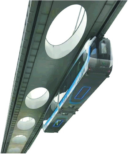 列车“倒挂”凌空飞行