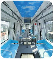 “光子号”采用通勤、观光一体化设计,利用空中立体交通优势,采用大开度侧窗,并在车厢地板设置了透明式观景窗,全车拥有270°观景功能,可为乘客带来全新的乘坐体验。