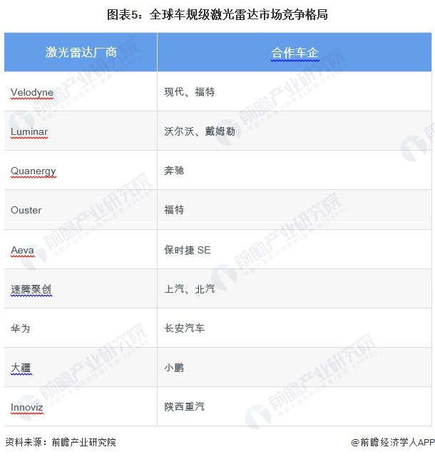 全球车规级激光雷达市场竞争格局