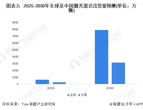 根据Yole等第三方的预测,未来5-10年将加速放量,预计2025年和2030年全球激光雷达出货量分别有望达到约660万颗和7934万颗,其中中国分别出货292万颗和3154万颗左右。