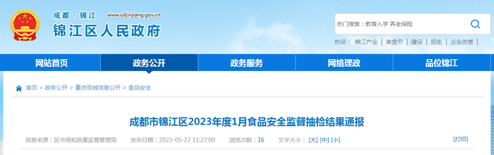 成都市锦江区市场监督管理局通报2023年度1月食品安全监督抽检结果