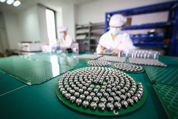 2022年7月11日,山东潍坊高新区蓝色智谷园区入孵企业山东智显光电科技有限公司,工作人员正在对定向扬声器线路板进行焊接。日前,山东潍坊高新区蓝色智谷园区服务中心深入了解中小企业经营、发展难题,陆续推行中小企业专员服务、科创投资基金、知识产权免费申领等服务,为中小企业提供人力、财力等支持,助力辖区中小企业纾困。图源:新华社