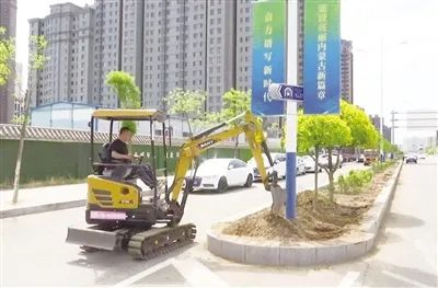 5月18日上午,记者在丁香北路看到,园林工作人员正在将丁香树苗植入马路中央分车带内挖好的树坑。据了解,丁香北路两侧绿化提升改造前黄土裸露严重,存在苗木稀疏、缺失的情况。不久前,新城区园林建设服务中心组织人员对这条道路两侧进行了绿化提升改造,不仅给市民出行带来清凉,还能让大家欣赏沿途美景。